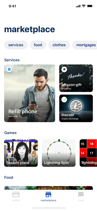 In this concept (just a concept) we are seeing a wallet that features a marketplace. Imagine an app (a wallet) that provides the ability for other services to live and be built on top of it. Think about Messenger apps or wechat mini-programs. Where developers have APIs and pre-made Interfaces to create their services on.